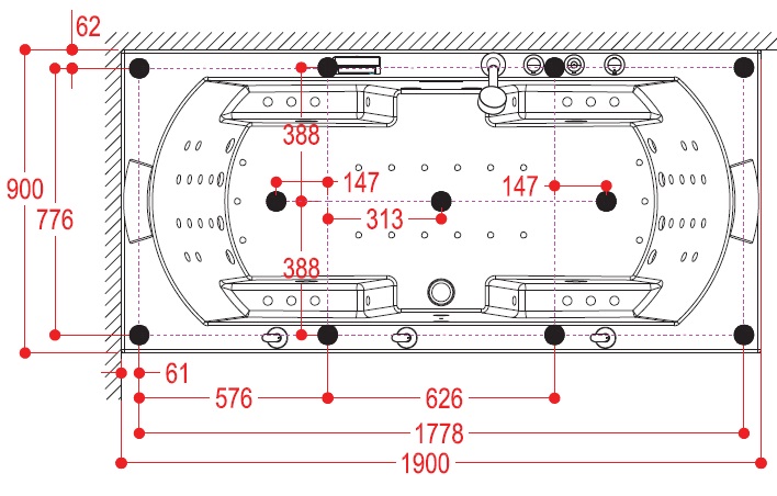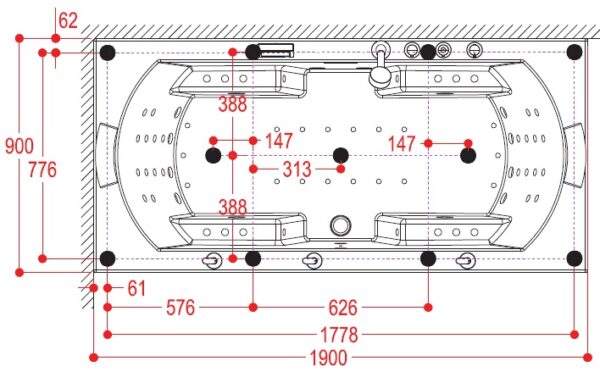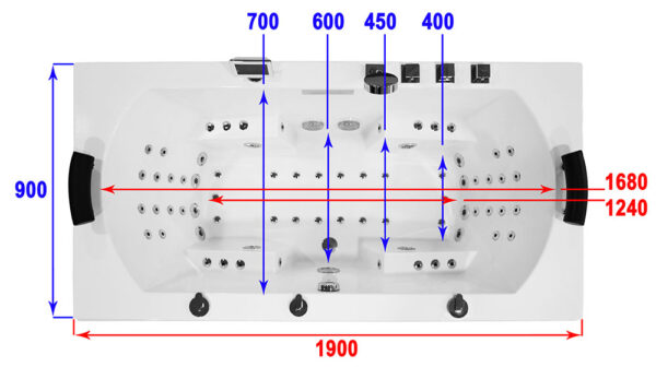 External dimensions: 1900 x 900 x 700 mm