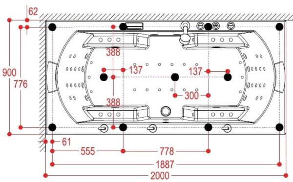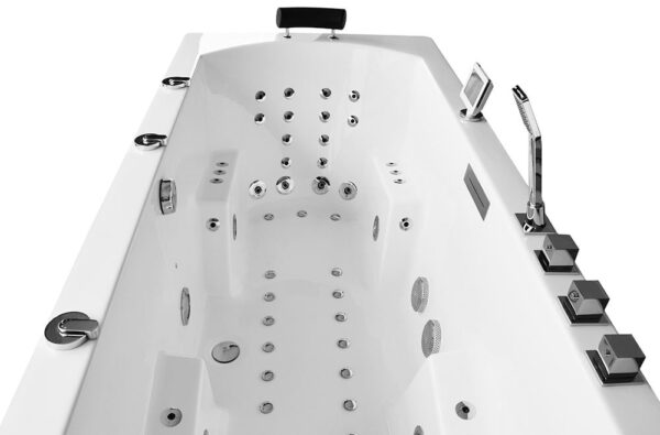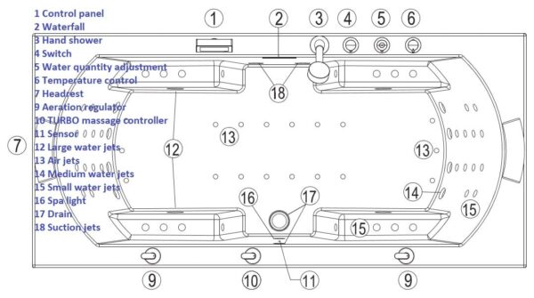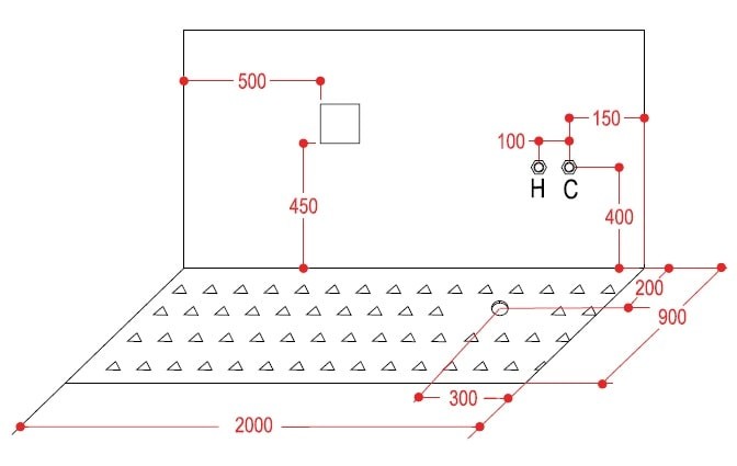 - A special drain under the showerhead, the water that drips down the shower hose does not drip under the bathtub but is drained into the sewage system.