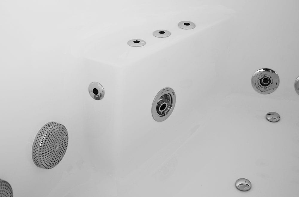 All water jets are made of stainless steel, and their positioning is aimed at various pressure points of the body to ensure a relaxing massage. The flat jets provide greater massage comfort as they are not felt while relaxing in the bathtub. Directional jets are installed in the lower part of the bathtub, at the height of the back and along its long sides, which allow changing the direction of the massage. The jets in the bathtub floor and at the height of the upper back are directed to massage the ends of the muscles for better circulation.