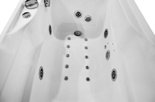 Stainless steel construction – the entire bathtub is based on a stable stainless steel frame, thanks to which the bathtub has a strong and durable support base, which is very important for larger bathtubs. The weight of a 2-person whirlpool tub varies from 80-120 kg, including the weight of the water, and people come out with a relatively large weight, which requires solid support, which is why a good design of the tub is so crucial.