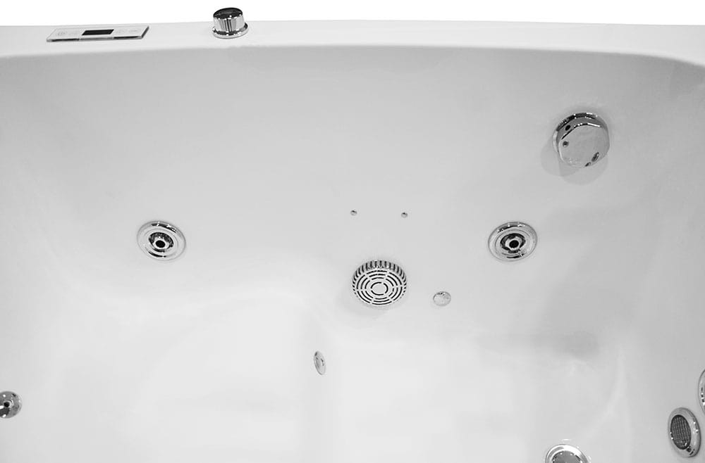 Stainless steel construction – the entire bathtub is based on a stable stainless steel frame, thanks to which the bathtub has a strong and durable support base, which is very important for larger bathtubs. The weight of a 2-person whirlpool tub ranges from 80-120 kg, including the weight of the water, and people come out with a relatively large weight, which requires solid support, which is why a good bathtub design is so crucial.