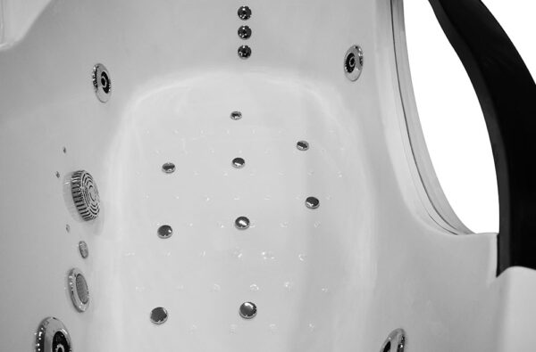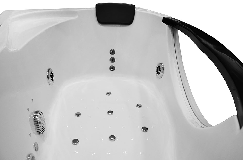 Stainless steel construction – the entire bathtub is based on a stable stainless steel frame, thanks to which the bathtub has a strong and durable support base, which is very important for larger bathtubs. The weight of a 2-person whirlpool tub varies from 80-120 kg, including the weight of the water, and people come out with a relatively large weight, which requires solid support, which is why a good design of the tub is so crucial.