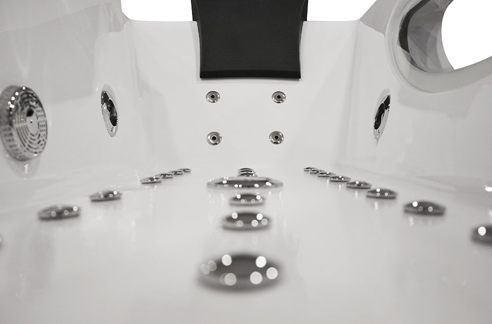 The bathtubs are equipped with a 1.5 kW instantaneous water heater and a temperature sensor. This prevents the water from cooling down during prolonged use of the bathtub. The temperature should be from 35 ° C to 40 ° C. In addition to maintaining the water temperature, the heater can also raise it to a maximum of 40 ° C.
