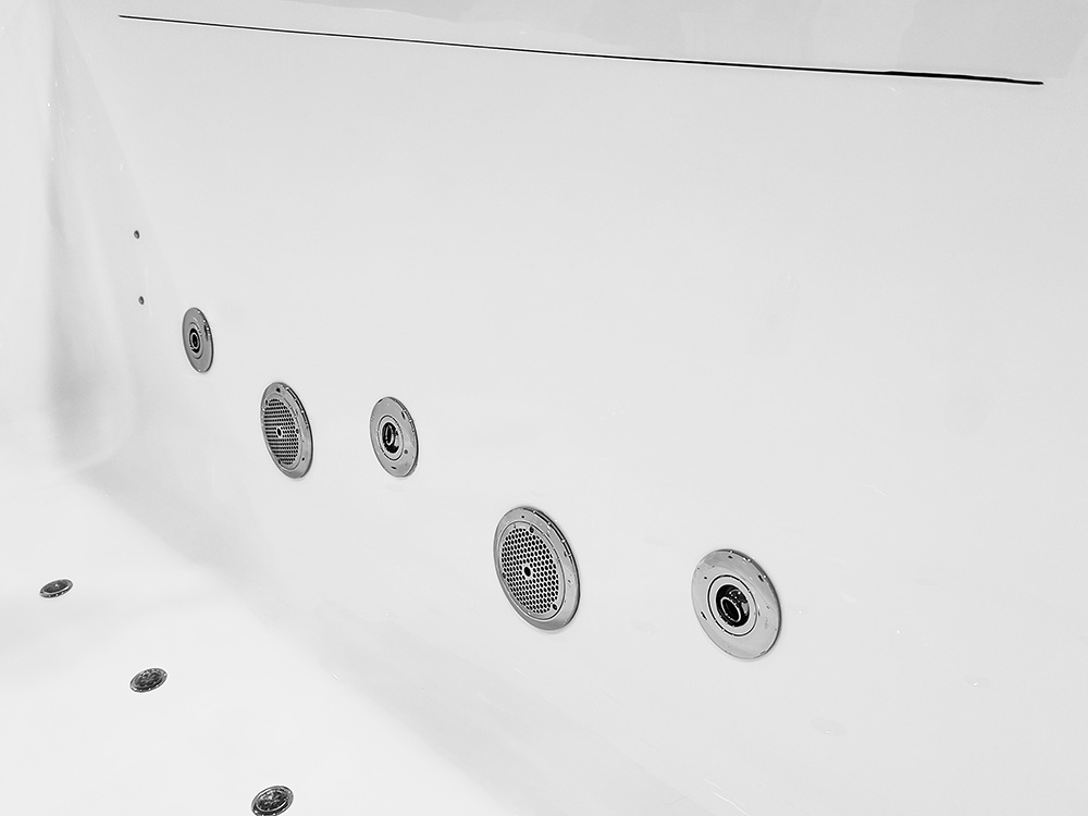 Stainless steel water jets ensure corrosion resistance, durability, and long-term reliability of the hydromassage system. Their high-precision construction guarantees optimal water flow, enhancing comfort and relaxation during bathing.