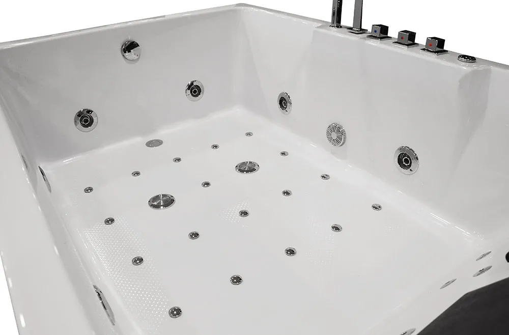 The bathtubs are equipped with a 1.5 kW instantaneous water heater and a temperature sensor. This prevents the water from cooling down during prolonged use of the bathtub. The temperature can be set from 35 ° C to 40 ° C. In addition to maintaining the water temperature, the heater can also raise it to a maximum of 40 ° C.