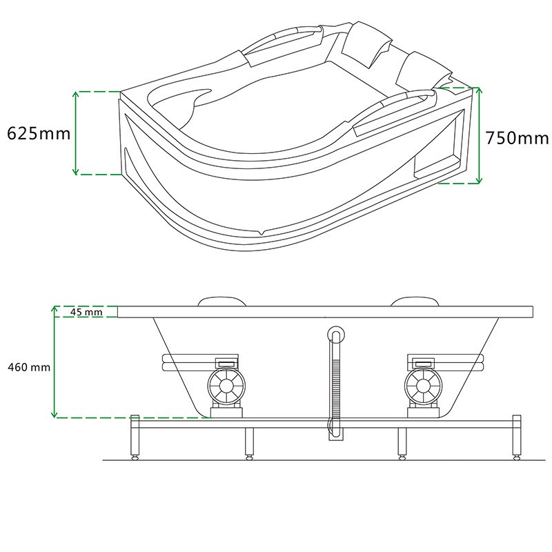 - 2 of water level sensors: thanks to this function, the water pump can be started only when the water level in the bathtub is adequate